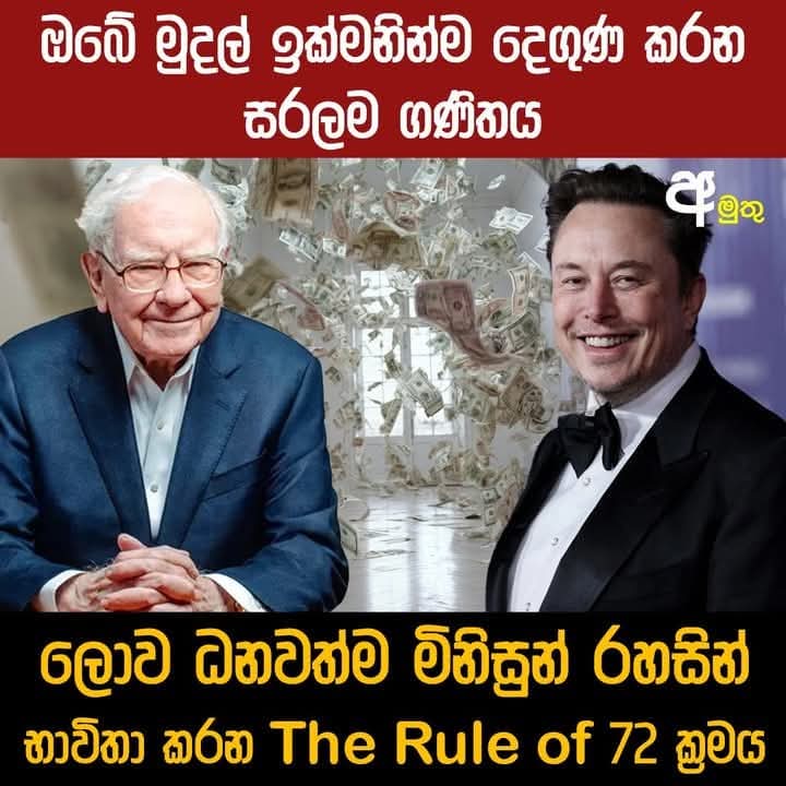 ඔබේ මුදල් ඉක්මනින්ම දෙගුණ කරන සරලම ගණිතය ලොව ධනවත්ම මිනිසුන් රහසින් භාවිතා කරන The Rule of 72 ක්රමය 💰📈 ඔබ