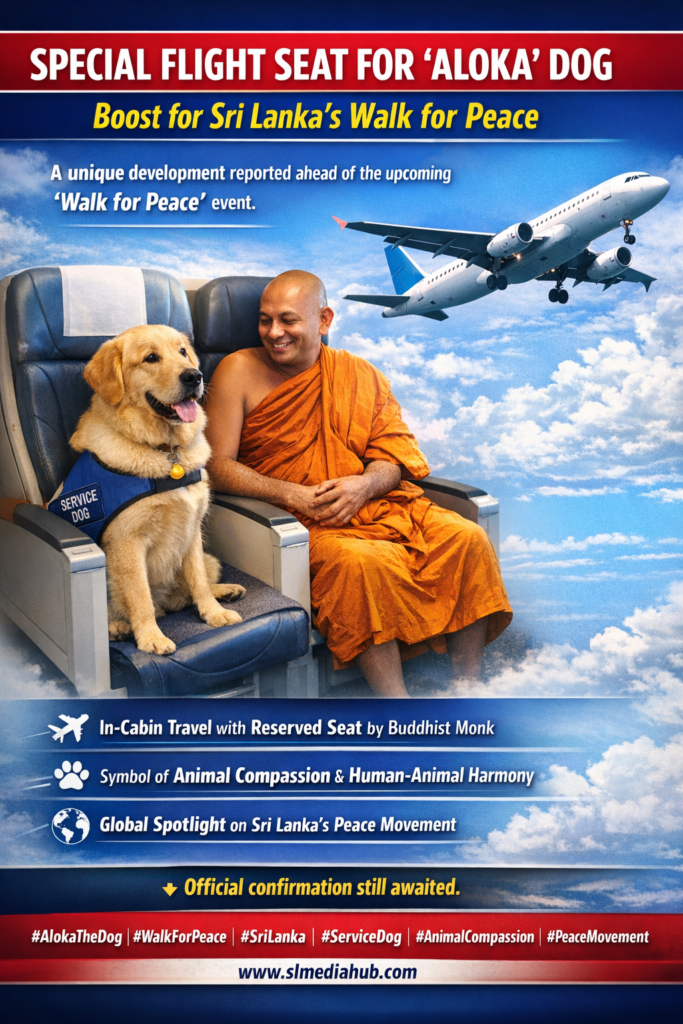 ‘ආලෝකා’ සුනඛයාට ගුවන් යානයේ විශේෂ අසුනක් – ශ්රී ලංකාවේ සාම පා ගමනට නව අවධානයක් ශ්රී ලංකාවේ පැවැත්වීමට නියමිත “Walk for