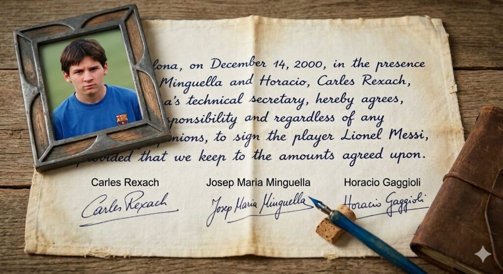 2000 දෙසැම්බර් 14 දින FC Barcelona හි තාක්ෂණික අධ්යක්ෂ වූ Carles Rexach විසින් මෙම කඩදාසිය මත ලියන ලදී.📜 Napkin එකේ
