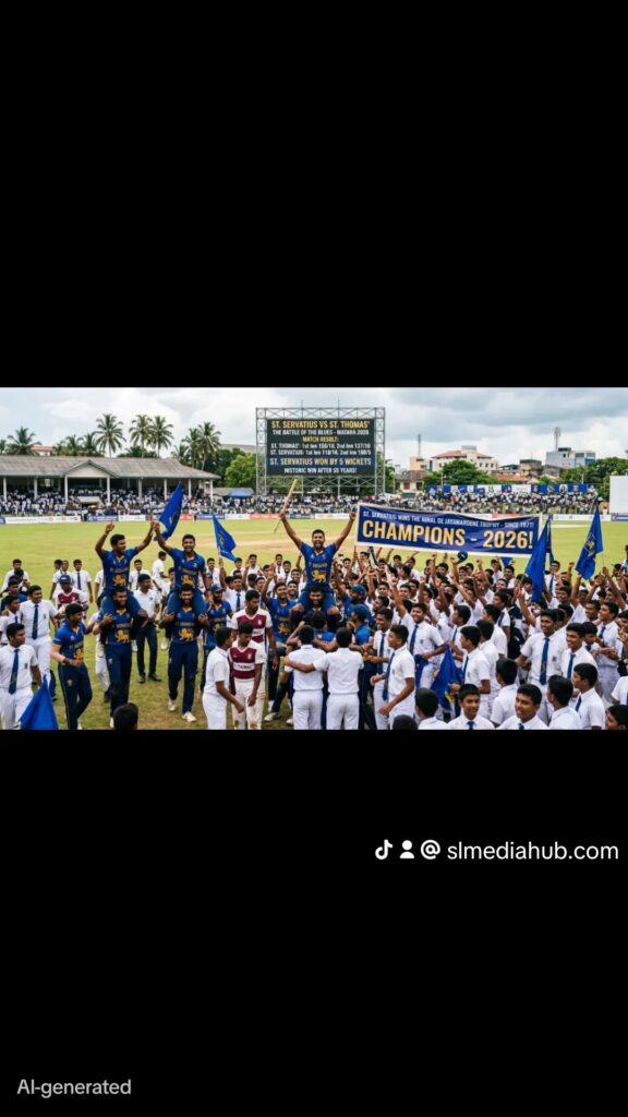 ඓතිහාසික “නිල් මහා සටන”: සාන්ත සර්වේශස් විද්යාලයට වසර 55කට පසු අභිමානවත් ජයක්! ශ්රී ලංකාවේ පැරණිතම සහ ප්රමුඛතම පාසල් ක්රිකට් ගැටුමක්
