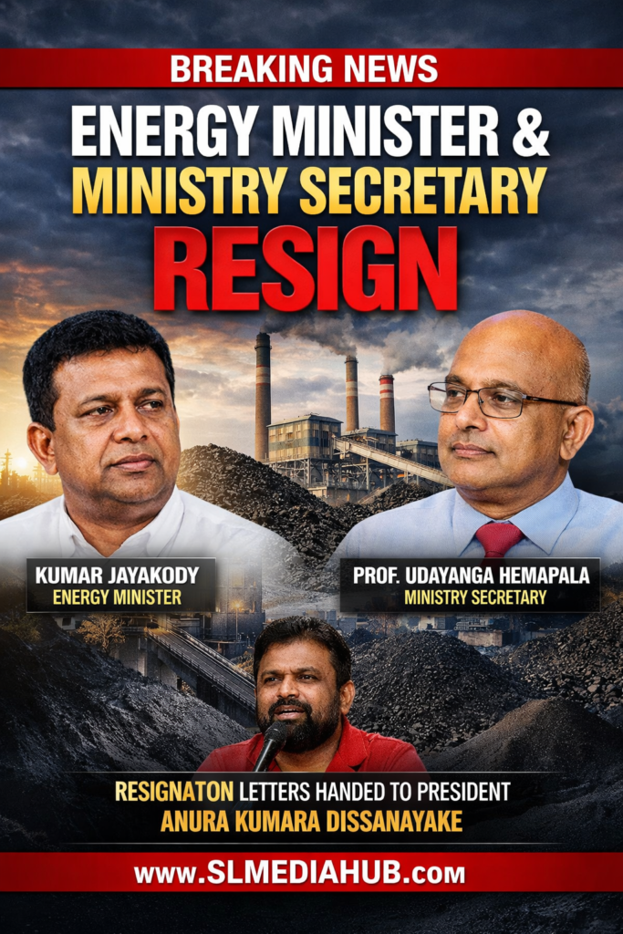 🔴 බලශක්ති ඇමති කුමාර ජයකොඩි සහ අමාත්යාංශ ලේකම් ඉල්ලා අස්වෙති. බලශක්ති අමාත්ය කුමාර ජයකොඩි මහතා සහ අමාත්යාංශ ලේකම් මහාචාර්ය උදයංග