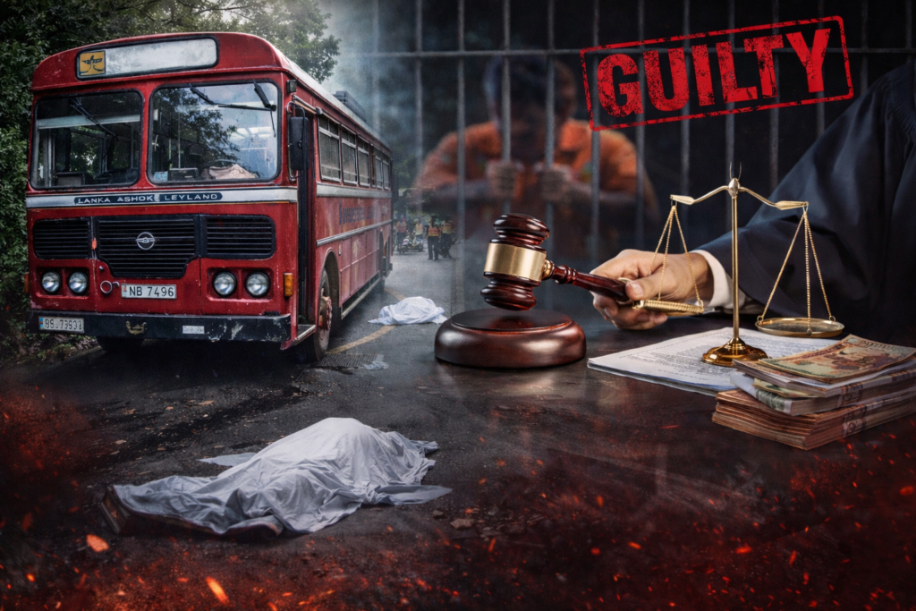 ධාවනයට නුසුදුසු ශ්රී ලංකා ගමනාගමන මණ්ඩලය (ලංගම) බස් රථයක් පටු මාර්ගයක ධාවනය කර පුද්ගලයෙකු මරණයට පත් කිරීමේ චෝදනාවට වරදකරු වූ