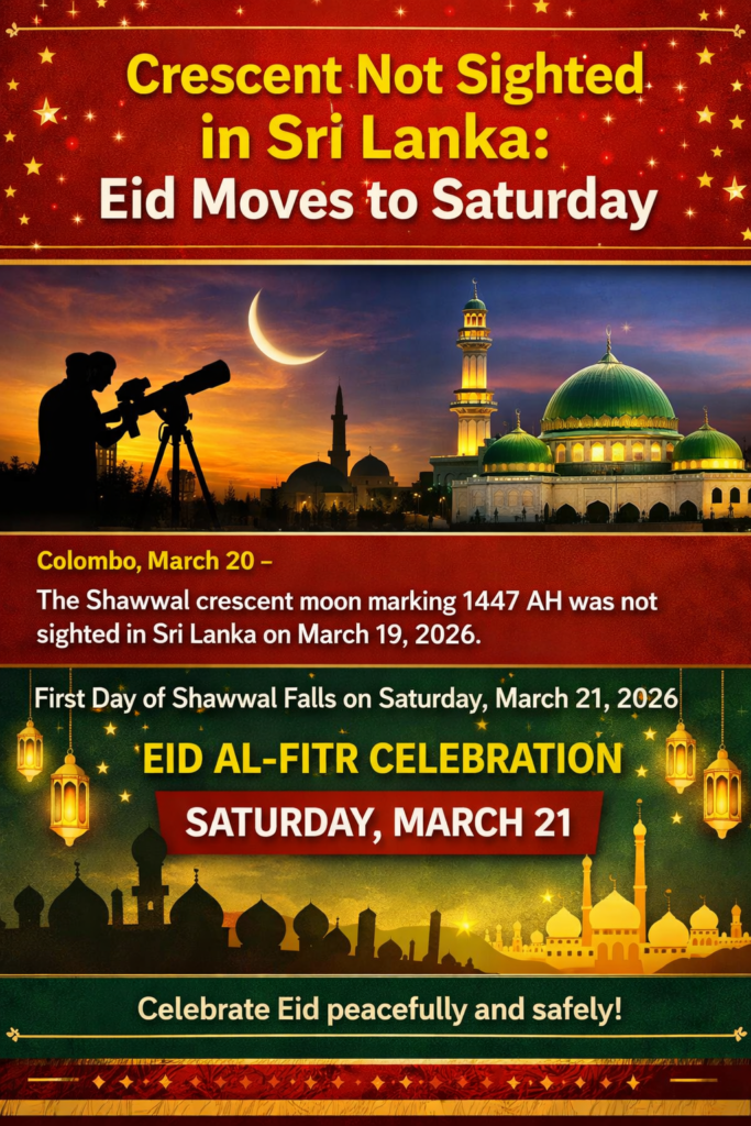 කොළඹ, මාර්තු 20 – 1447 හිජ්රි වසරේ ශව්වාල් මාසය ආරම්භය සනිටුහන් කරන හිලාල් (චන්ද්ර කොටස) 2026 මාර්තු 19 වන බ්රහස්පතින්දා